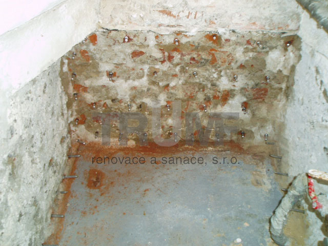 vodorovná 2-řadá injektáž – smíšené zdivo