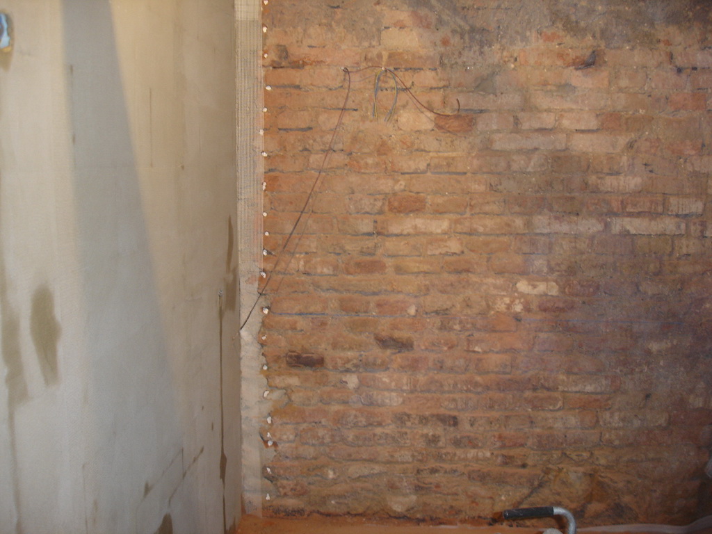 Začátkem roku jsme se podíleli na rekonstrukci sklepa bytového domu na Praze 5. Celý projekt transformace původních sklepních prostor na luxusní restauraci pro náročnou klientelu kladl velký důraz na každý detail. Původní záměr počítal s mechanickou metodou dodatečné hydroizolace zdiva – podřezáním, nicméně po našem doporučení a poskytnutí plnohodnotné záruky jsme zvolili injektáž zdiva. Konkrétně jsme vybrali metodu zvanou tlaková krémová injektáž zdiva. Obvodové zdivo domu situované do dvorního traktu jsme odkopali na základovou spáru a provedli svislou hydroizolaci obvodového pláště. V úrovni podlah pak byla provedena krémová injektáž zdiva profesionálním tlakovým čerpadlem. Obvodové zdivo situované do ulice se investor rozhodl neodkopávat – především z důvodu vysoké administrativní náročnosti spojené s vyřízením potřebných povolení. Proto jsme byli postaveni před úkol zajistit odvlhčení obvodového zdiva z vnitřní strany.