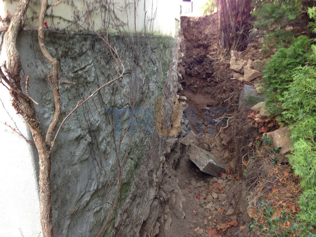 Jednou z posledních podzimních akcí roku 2013 bylo odizolování domu proti vlhkosti provedením svislé hydroizolace obvodového zdiva pod úrovní terénu, včetně základů. Náš klient si pořídil nemovitost u Sedlčan, aby mohl trávit víkendy v klidném prostředí. Jedná se o částečně podsklepený dvoupodlažní objekt z první poloviny minulého století, který je zasazený do svažitého terénu. Vzhledem k jeho umístění se polovina spodní stavby a základů nachází 2,5 m pod úrovní terénu. V těchto částech zdiva byly patrné vlhkostní projevy – vlhké mapy, odfouknuté a nesoudržné omítky, plísně a sanytr. Jako hlavní příčiny jsme identifikovali především absenci hydroizolací vnějšího zdiva a volně vyústěné dešťové svody.