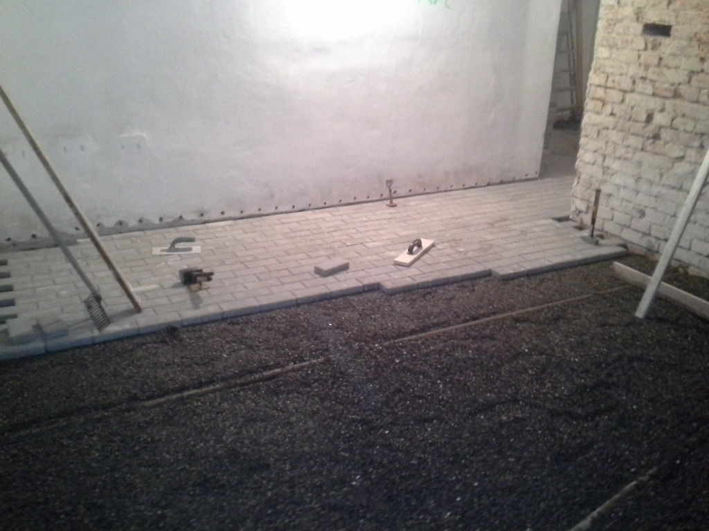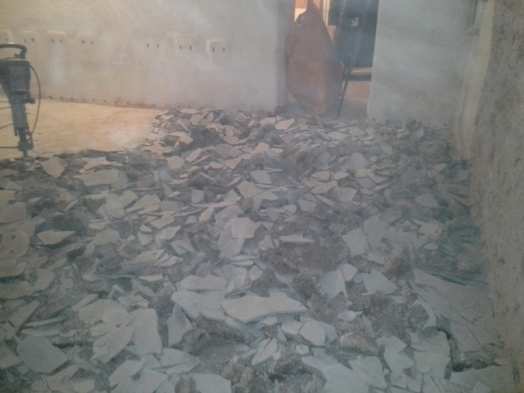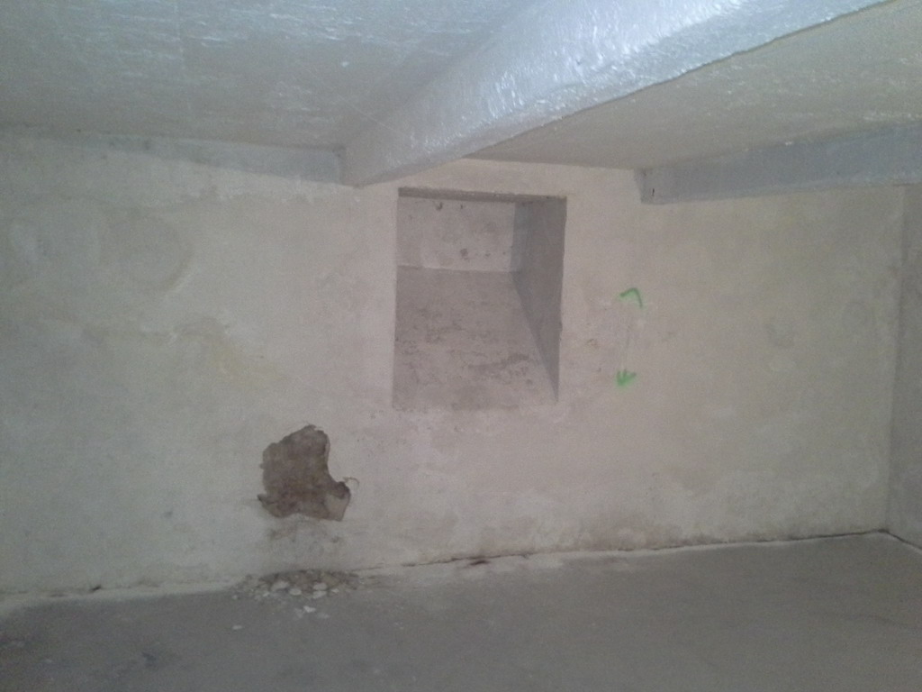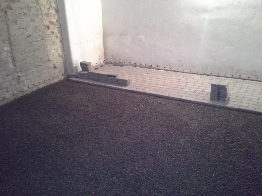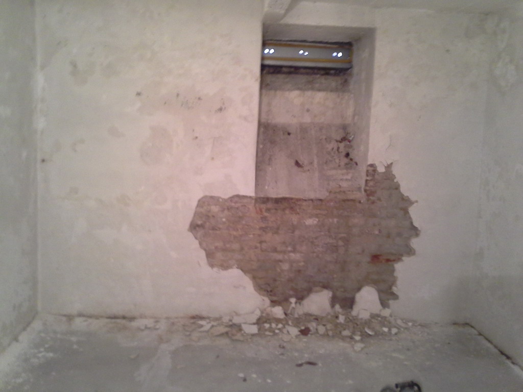 Poměrně nevhodným řešením bylo zalití podlah betonovým potěrem. Pod vrstvou betonu se totiž vlhkost hromadí a vzlíná do navazujících svislých konstrukcí. Tlaková injektáž zdiva sice vytvoří bariéru proti této vzlínající vlhkosti, ale chemická clona je neúměrně zatěžována a snižuje se její životnost. Betonové podlahy jsme tedy odstranili zcela nebo jen částečně podél obvodových zdí a nahradili je betonovou dlažbou usazenou do silné vrstvy štěrku. Toto řešení zajistí bezproblémové odvětrání zemní vlhkosti do prostoru, odkud je možné ji odstranit větráním. Tlaková injektáž zdiva se provedla na veškerém zdivu – vnitřním i obvodovém. Původní použité omítky byly obyčejné vápenocementové nikoli sanační. Bylo proto nutné jejich odstranění, aby po vyschnutí zdiva bylo možné aplikovat sanační omítku, která odolá náporu stavebních solí obsažených ve zdivu.